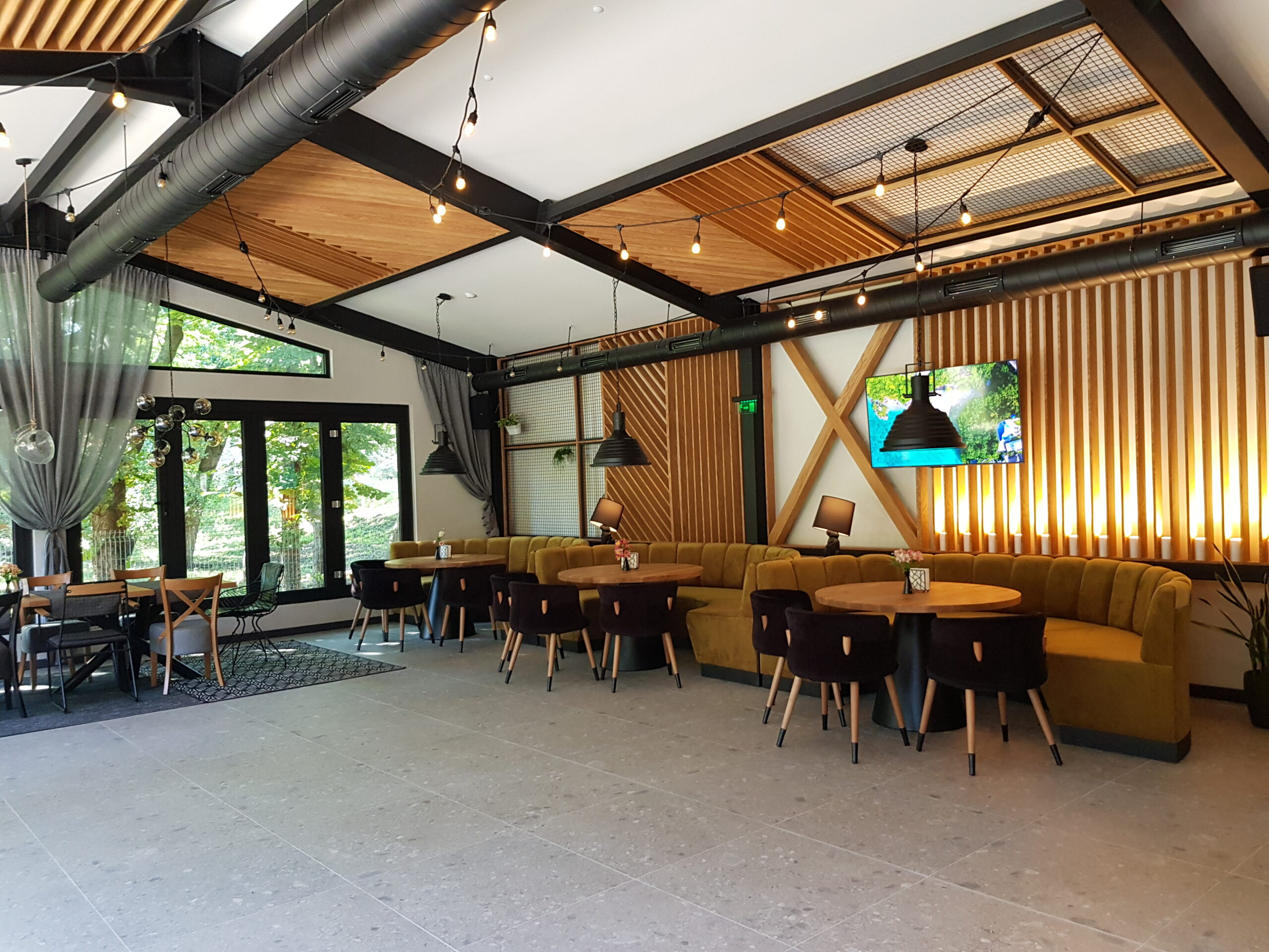 Ресторант „Западен Парк“ е оформен в уютен и стилен дизайн с широки пространства, който съчетава естествена светлина, модерни елементи и топли цветове. Атмосферата е спокойна и приятелска – подходяща за всички видове поводи: от ежедневни посещения до специални празници.
