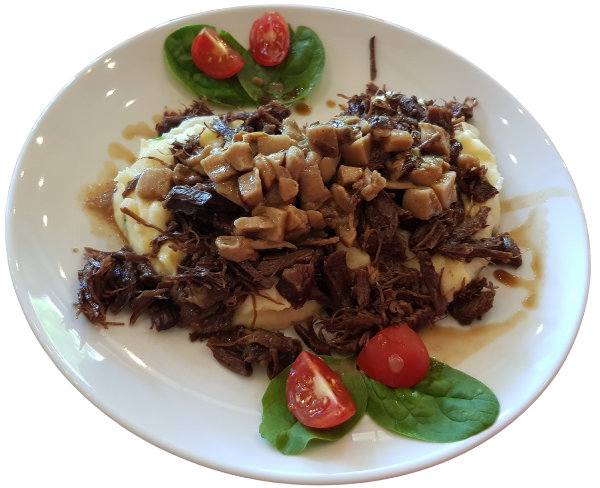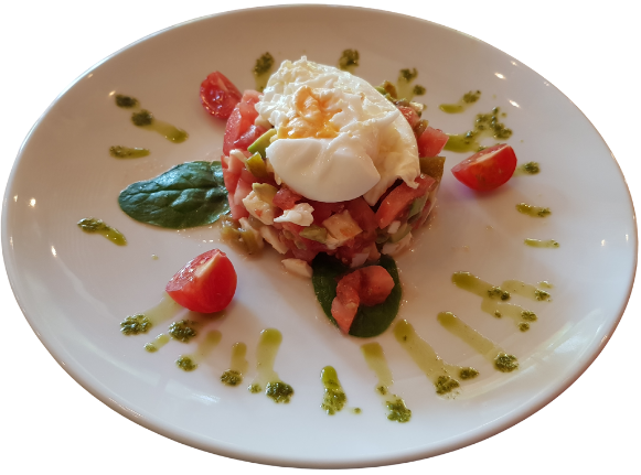 Храната се приготвя на място от пресни продукти, като ресторантът може да предложи: